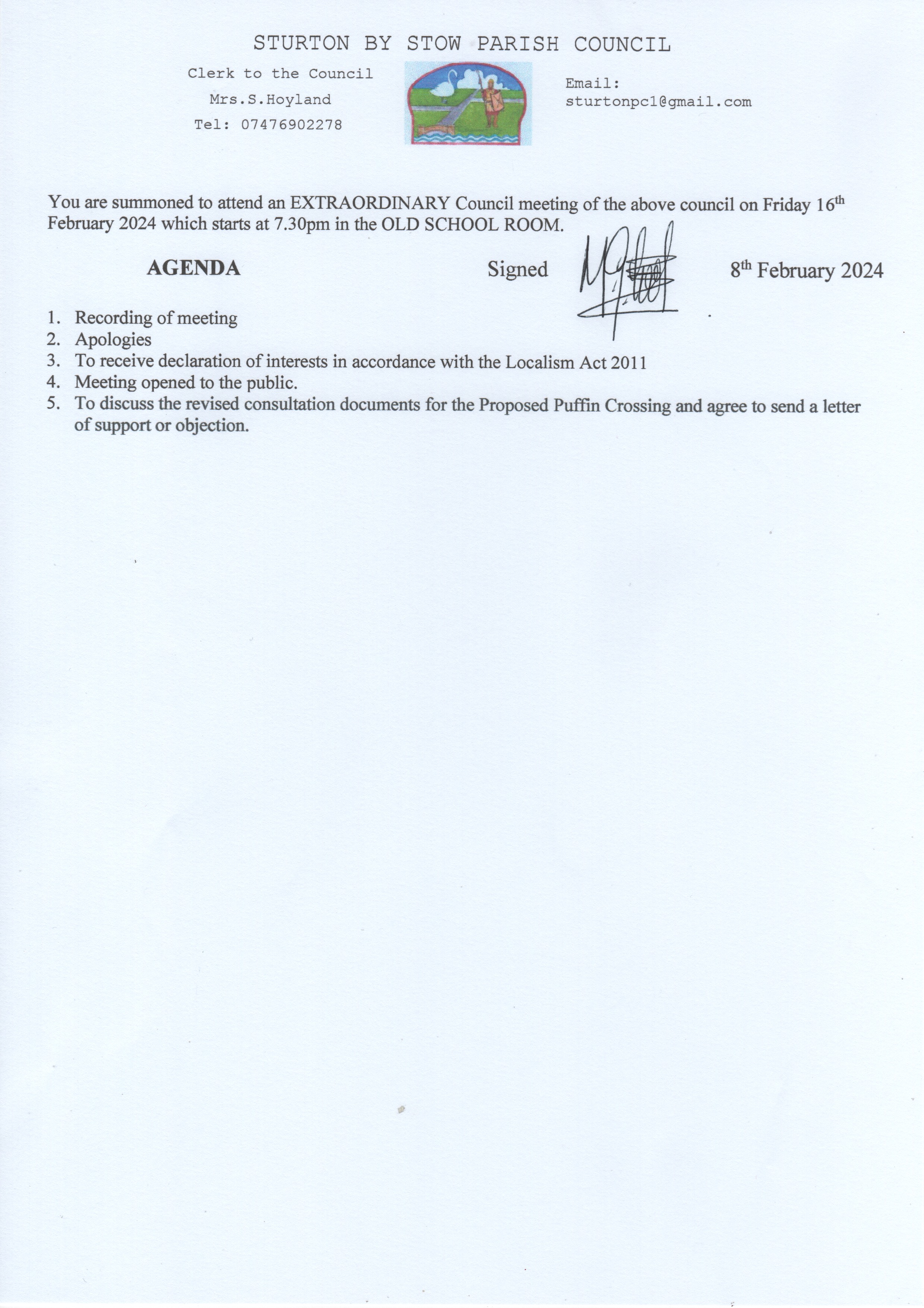 Extraordinary Agenda February 2024