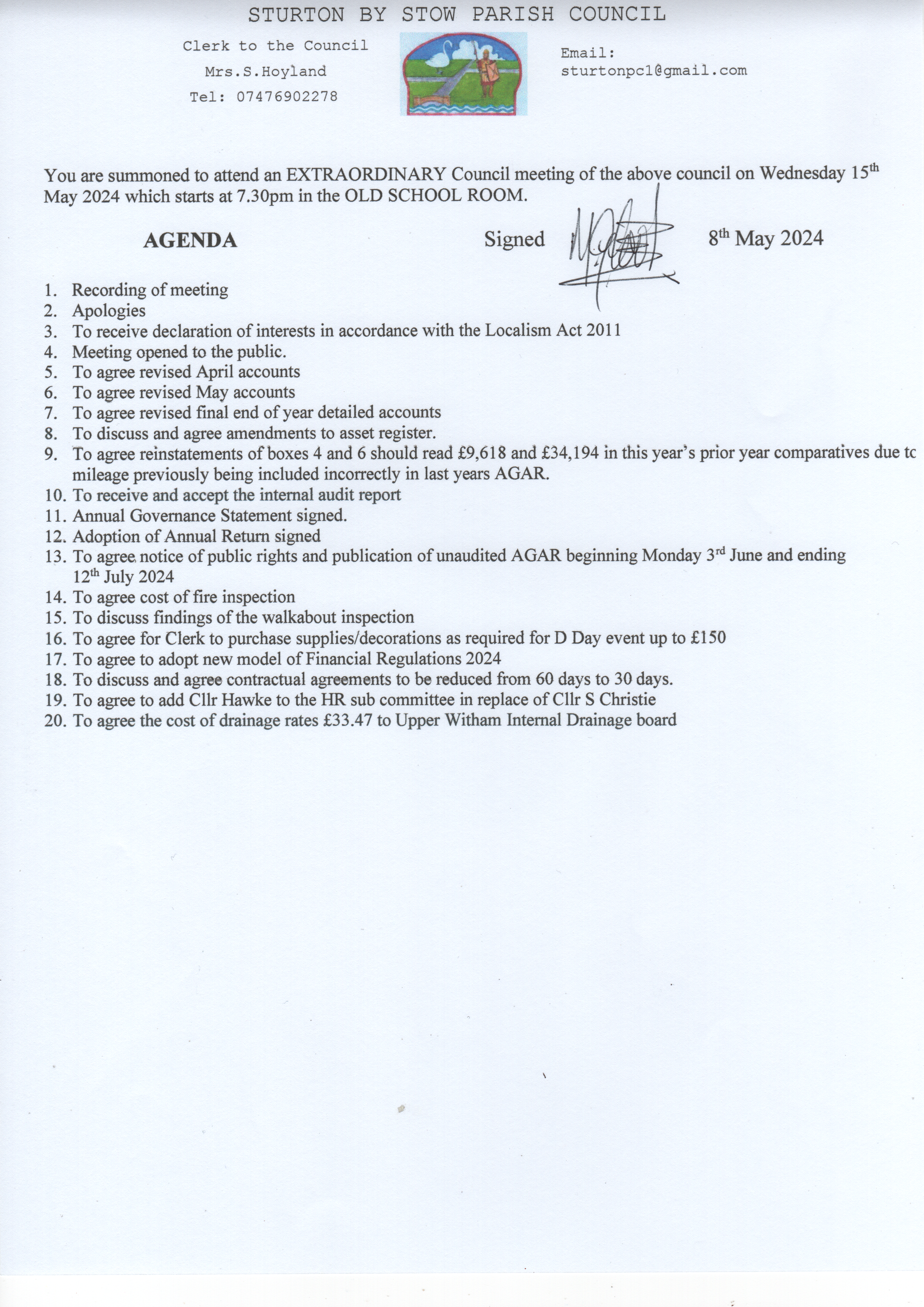 15th May Extraordinary Agenda